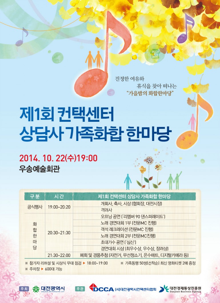 제1회 컨택센터 상담사 가족화합 한마당에 초대합니다 대전컨택센터 메일보내기 아이디로 검색 0 13,586 2014.10.15 01:43 짧은주소 - 짧은주소: http://www.dcca.co.kr/bbs/?t=1C 주소복사 × 짧은 글주소 복사 Note! 위 주소를 드래그, 복사(Ctrl+C)하여 사용하세요. 이전글다음글 목록 본문